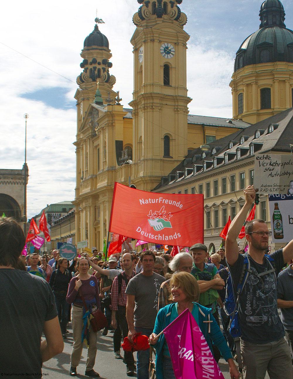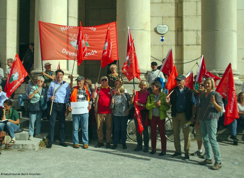 Außer den zahlreichen – und dank ihrer Fahnen gut sichtbaren - NaturFreunden beteiligten sich viele weitere Umwelt- Natur- und Tierschutzverbände, Erzeuger und Vermarkter von ökologischen Produkten, kirchliche Organisationen sowie verschiedene lokale und regionale Initiativen. Dabei waren gerade einmal drei Tage seit „noPAG/#ausgehetzt“ vergangen, einer weiteren Großdemonstration in München, die sich gegen das neue bayerische Polizeiaufgabegesetz und die Flüchtlingspolitik in Bayern richtete.