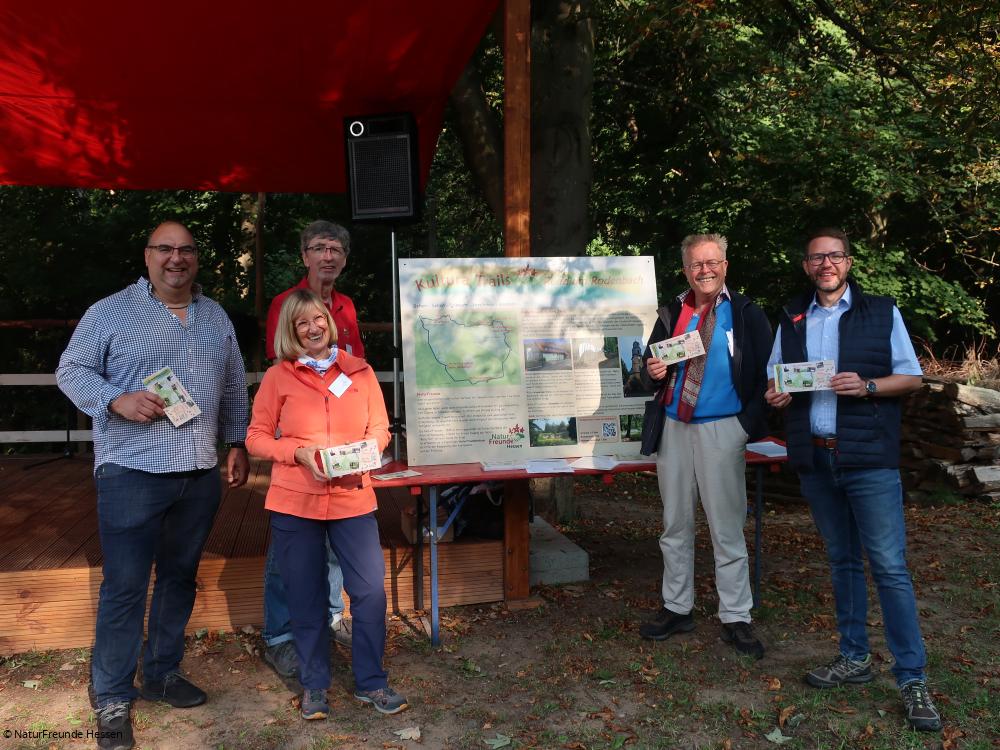 Bei der feierlichen Eröffnungsfeier am 26. September erkundeten 35 Wander*innen nach der Enthüllung der Tafel den KulturaTrail unter der Wanderleitung von Wolfgang Bergmann, dem Häuserreferenten des Naturfreundehauses Hanau-Rodenbach. Zurück im Naturfreundehaus stärkte sich die Wandergruppe in gemütlicher Atmosphäre. Landrat Thorsten Stolz und Bürgermeister Klaus Schejna betonten den Wert des KulturaTrails als touristische Attraktion für Rodenbach.