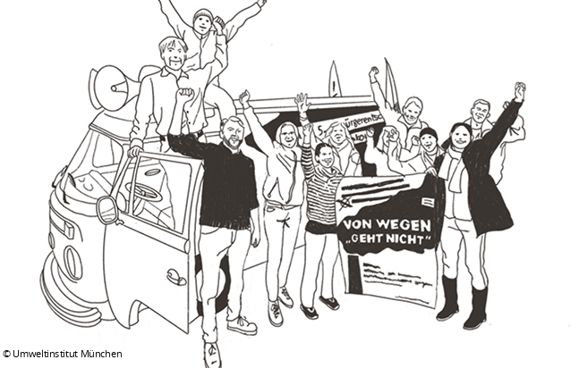 Das Handbuch "Klimawende von unten" gibt Klima-Aktivist*innen mithilfe realer Erfolgsgeschichten und Beispiele Tipps, wie Bürger- oder Volksbegehren zum Klimaschutz erfolgreich umgesetzt werden können. Herausgegeben wird das Handbuch von den Vereinen Umweltinstitut München, BürgerBegehren Klimaschutz und Mehr Demokratie, unterstützt werden die Herausgeber von einem breiten Bündnis aus Umweltverbänden, darunter die NaturFreunde Deutschlands, Greenpeace, der Bund für Umwelt und Naturschutz Deutschland (BUND) und der Allgemeine Deutsche Fahrrad Club (ADFC).